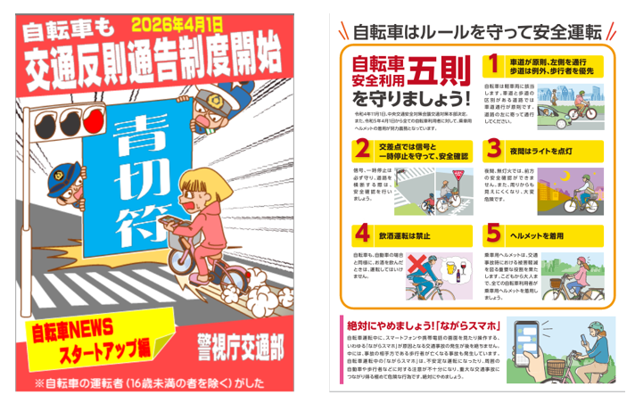 2026年(令和8年)4月1日から、自転車の交通違反に対して「青切符(交通反則通告制度)」が導入されます。これにより、自転車利用者にも反則金制度が適用され、違反への対応がより厳格になります。